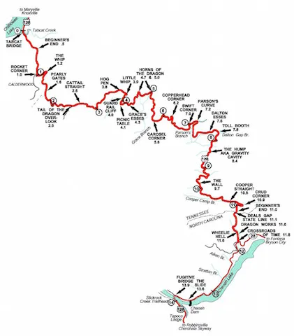 The “Tail of the Dragon,” is an iconic 11-mile stretch of Highway 129 located south of Knoxville, Tennessee. It is considered one of the world’s most famous destinations for driving enthusiasts who flock to it annually looking for a thrill ride. In its 11-mile span, the Tail of the Dragon boasts 318 curves! Every curve is unique with some banked corners like a race track, off-camber twists, and decreasing radius corners.