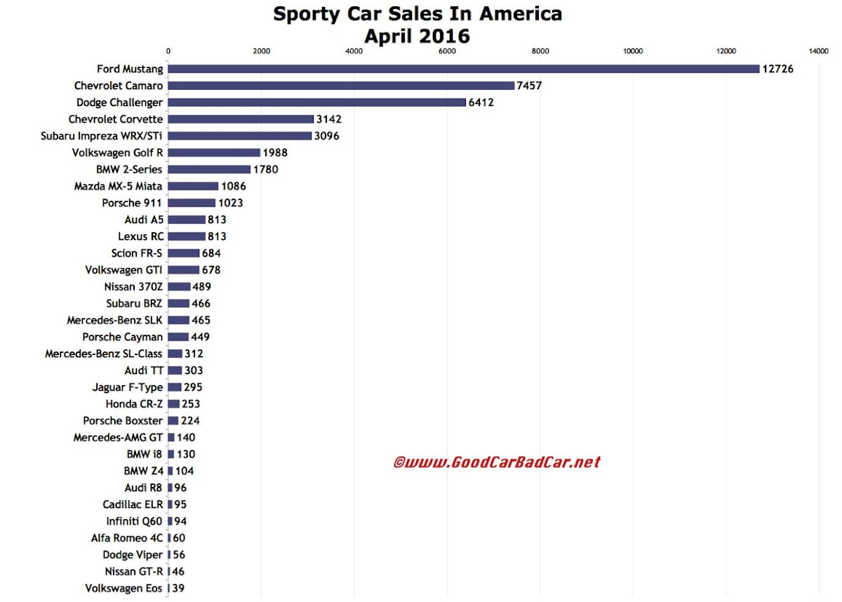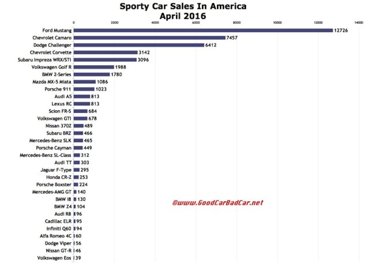 According to GoodCarBadCar, even though Corvette sales are down roughly 20% this year, it’s still handily trouncing every other competitor by a wide margin. In fact, the Corvette came in 4th place on the “Sporty Car” sales chart only trailing Mustang, Camaro and Challenger in calendar year 2015