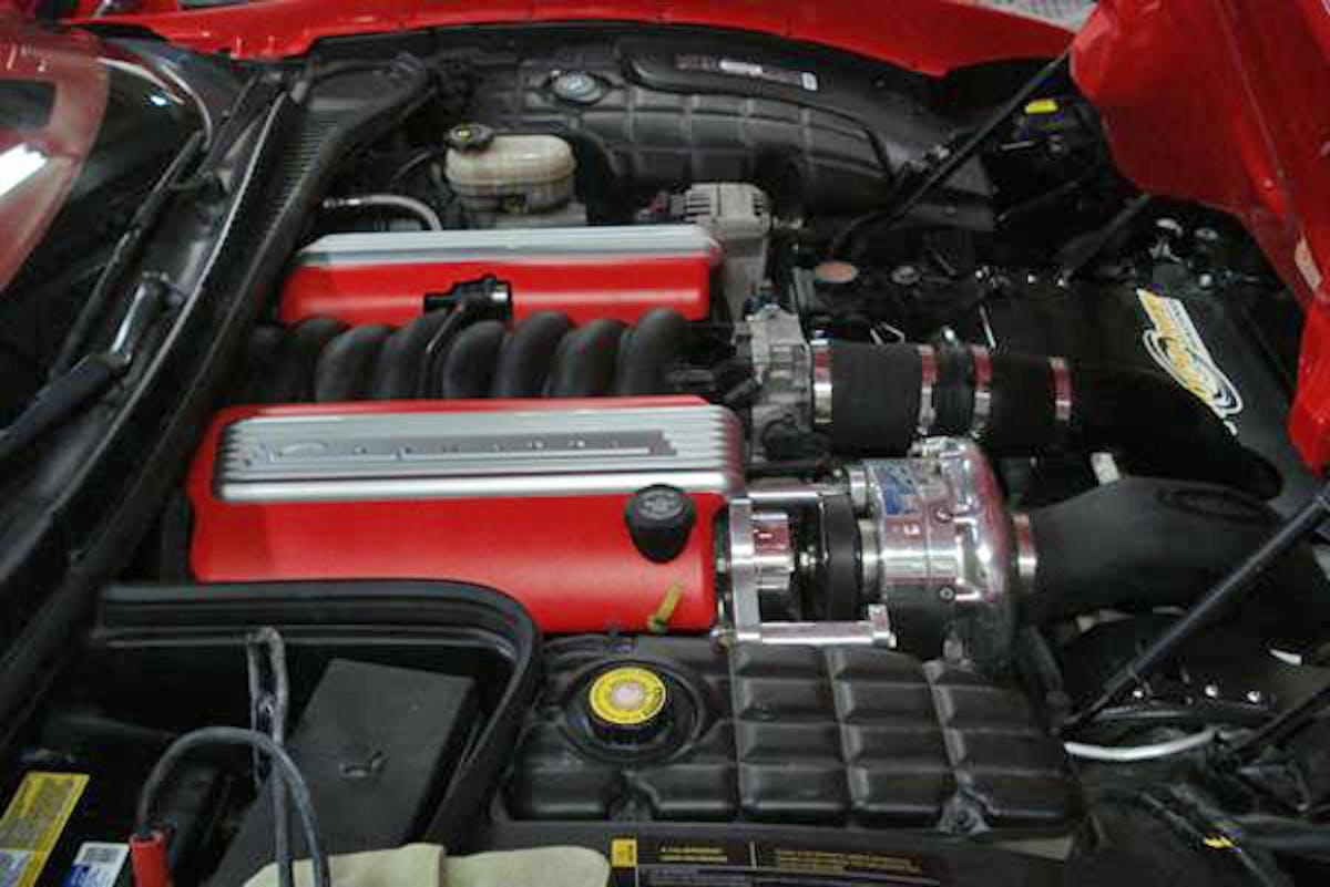 And to the builder’s credit, the interior was very well supplied, if a little too heavy on the red side. Here we find a heads-up display and Alpine stereo, as well as power seats. Other amenities include power steering and power brakes, cruise control, and dual climate air conditioning.
