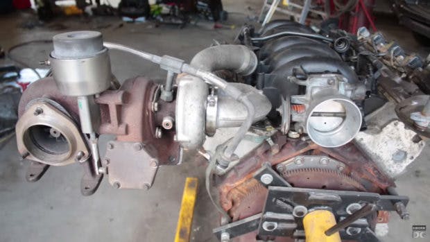 But they won’t be adding boost to the 3.6-liter Audi V8 that came out of their car — an Audi V8 by name. Instead, they’re using a time-tested Chevy LS. It’s a 5.3-liter GMC truck motor, to be specific, which has now been de-stroked to produce a 4.8-liter volume.