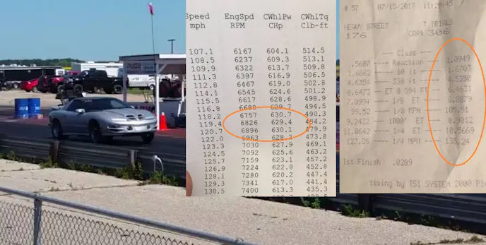 Though Tyler was thrilled by the numbers, he knew the real test was on the track. He headed to his local track to find out what the Trans Am had in it. When he arrived, he was informed that the first 100 feet of the track had just been repaved the day before and wasn’t exactly optimized for traction at the moment. Undeterred, Tyler headed to the starting line.