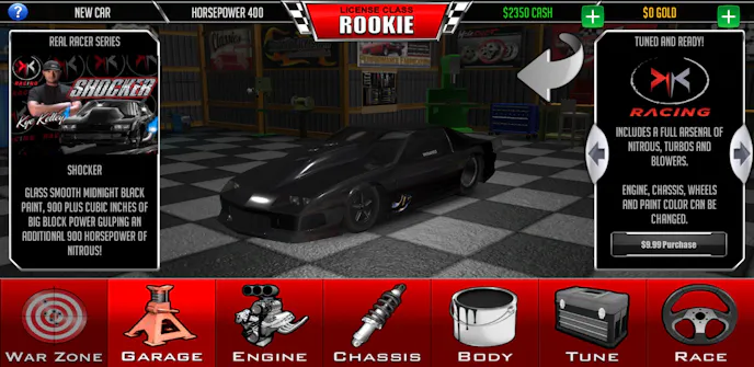 This game offers a plethora of vehicles including modern trucks, hotrods, muscle cars, classics, imports, fuel altereds, and the epic Pro-Mods which can all be customized. If you are into Street Outlaws, jump on into the famous nitrous breathing Farm Truck. Not into old farm trucks? Door Slammers 2 has you covered with just about the entire cast of Street Outlaws including the turbocharged Dung Beetle, Kye Kelly’s Shocker Camaro, Monza’s Split Bumper Camaro, the Street Beast, Megladon, and even Disco Dean Karns made the game! Our personal favorite naturally, is the awesome ProCharged Dragzine C7 Corvette Stingray.