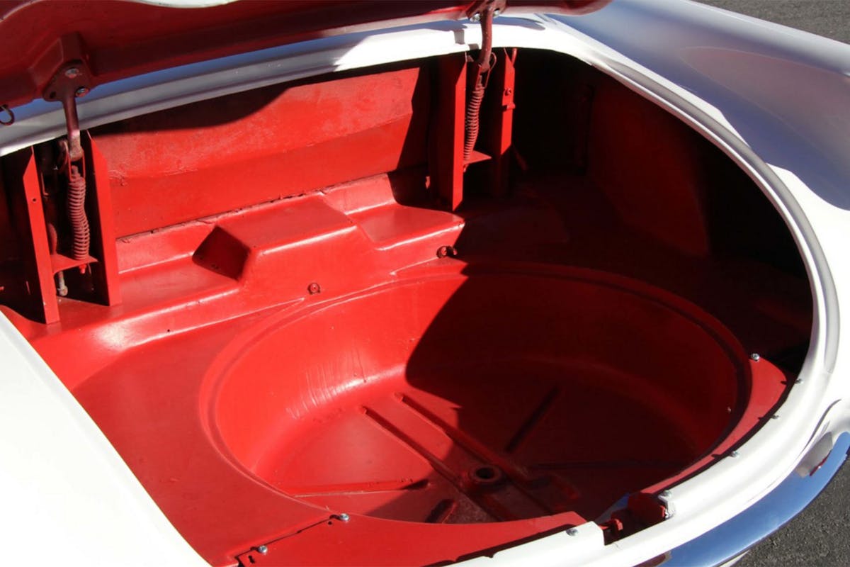 To achieve a favorable weight distribution, both the power train and passenger compartment were pushed toward the rear end of the car. But aside from the light weight body work and this weight distribution engineering decision, the Corvette’s initial sports car aspirations largely ended there.