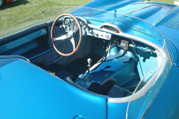 Under the skin, the XP-64 consisted of a tubular steel space frame which featured coil-over-shock front suspension, a de Dion rear axle and inboard-mounted aluminum drum brakes. Motivation was provided by a race-spec version of Chevy’s 283ci iron block V8, which featured aluminum cylinder heads and Ramjet mechanical fuel injection.