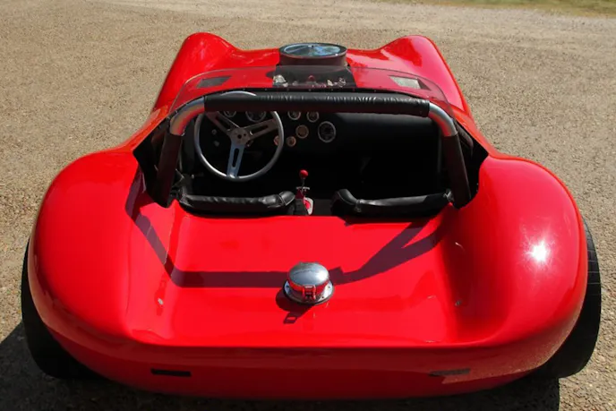 Working with fabricator Don Edmunds, Thomas set about designing a vehicle that would be underpinned largely by Corvette componentry. Their approach to design was decidedly less scientific than a major manufacturer’s, as the two famously were said to have simply selected the motor, gearbox, and differential they wanted to use, laid them out on the shop floor, and drew chalk outlines around them to serve as the blueprint for the lower part of the chassis. In similar fashion, the body began as not much more than a napkin sketch.