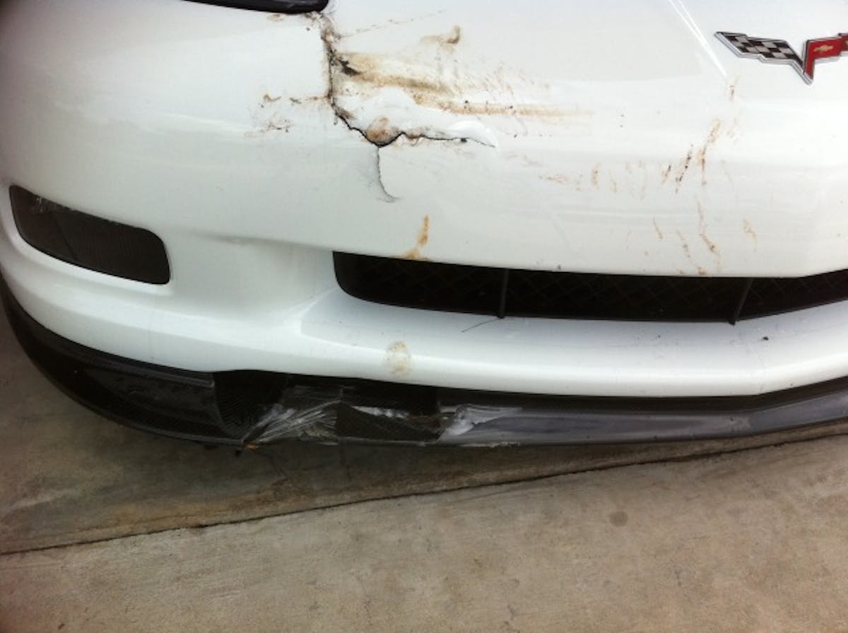 Imagine the horror of seeing your Corvette roll down a steep driveway and subsequently into a parked trailer. This scenario is not a fictional tale of “what if,” but it is a first hand account of the misfortune that befell a Corvette owner. A CorvetteForum member returned home, backed his ZR1 into the driveway and engaged the parking brake just as most drivers would do in the same situation; according to the poster he did not put the car in reverse as he normally would, but with the e-brake engaged he did not give it a second thought. As the driver exited the C6 to retrieve items from the hatch, the movement  caused the car to roll. As he hurried around the car and tried to jump inside, the ZR1 had picked up too much speed resulting in the car owner being dragged along for some twenty feet.
