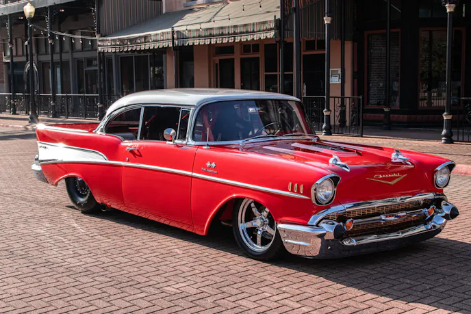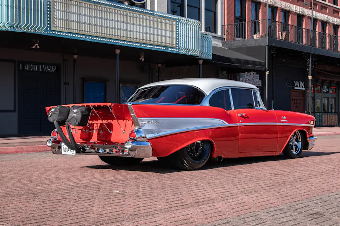 When Richardson decided on this build, he had his dream car in mind and knew what he wanted. The Pro Street cars from his youth stuck with him into adulthood, and that low, aggressive, big-tire, race car look is precisely what Richardson pictured in his head for his ’57. The result speaks for itself. From every angle, this Pro Street ’57 embodies the look Richardson was after from the start.