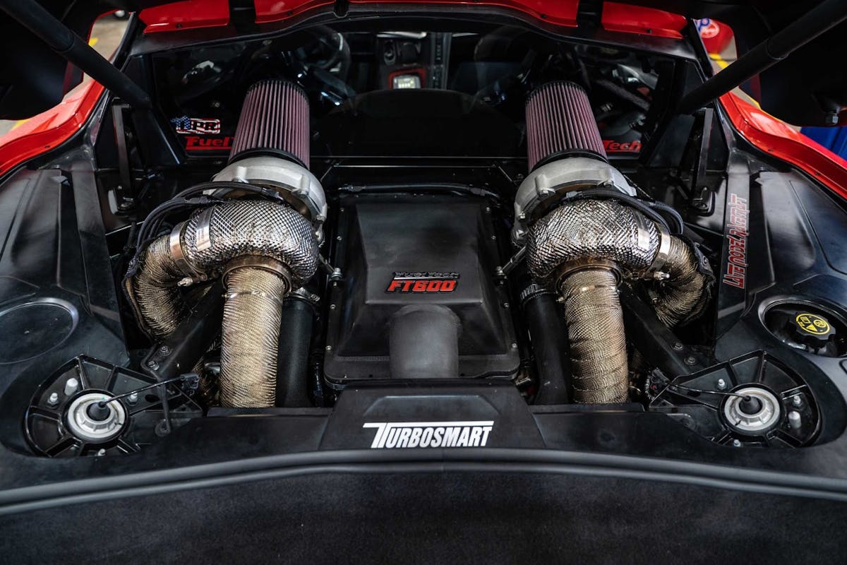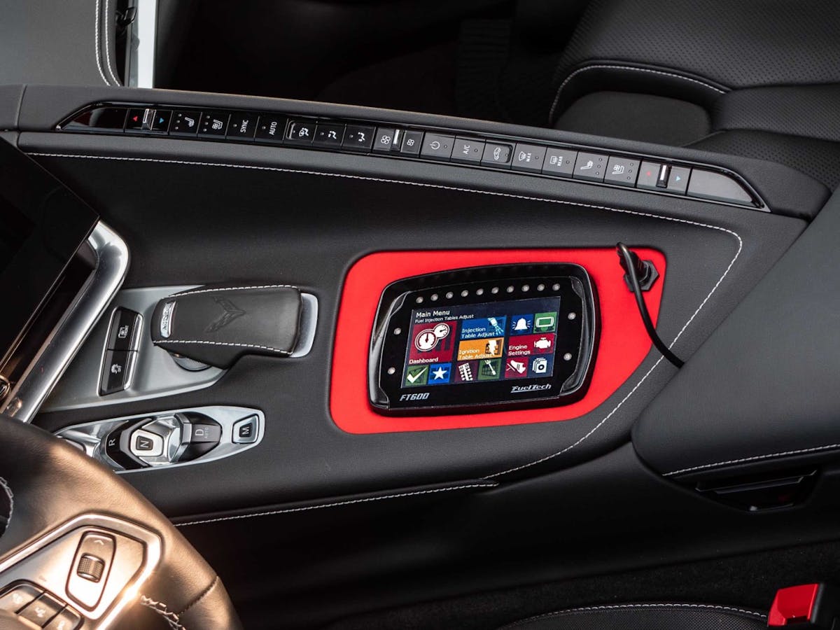 Companies like FuelTech have been on a mission to figure out ways to utilize all of the technology included in the car’s build, but also build in a safe window for significant upgrades. FuelTech used one of its FT600 engine management systems to coordinate with the car’s direct-injection system. Designed as a stand-alone ECU, the FuelTech FT600 is now integrated alongside the factory C8’s control system. This allows the folks at FuelTech to integrate many of the additional controls and safeguards of increasing the boost while also being able to receive the necessary data to further develop the application.