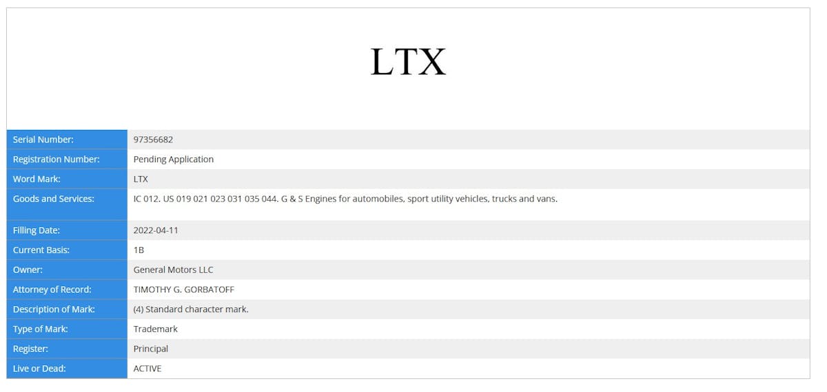 If you’re reading this, we can be certain you are familiar with the “LSx” moniker, but recently, GM just submitted an application to trademark the “LTX” mark, possibly for a high-horsepower variant of the direct-injected, GEN V engine family?