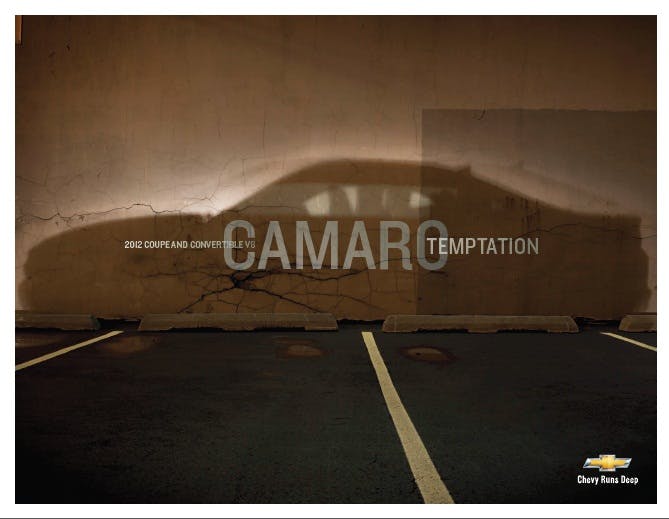 New car brochures are just like new cars – they smell good and are oh so appealing to look at. The new ‘12 Camaro brochure recently released by Chevrolet is no different. Thanks to information on Camaro5, we can now add the Camaro brochure to the already released Corvette brochure for your reading pleasure.