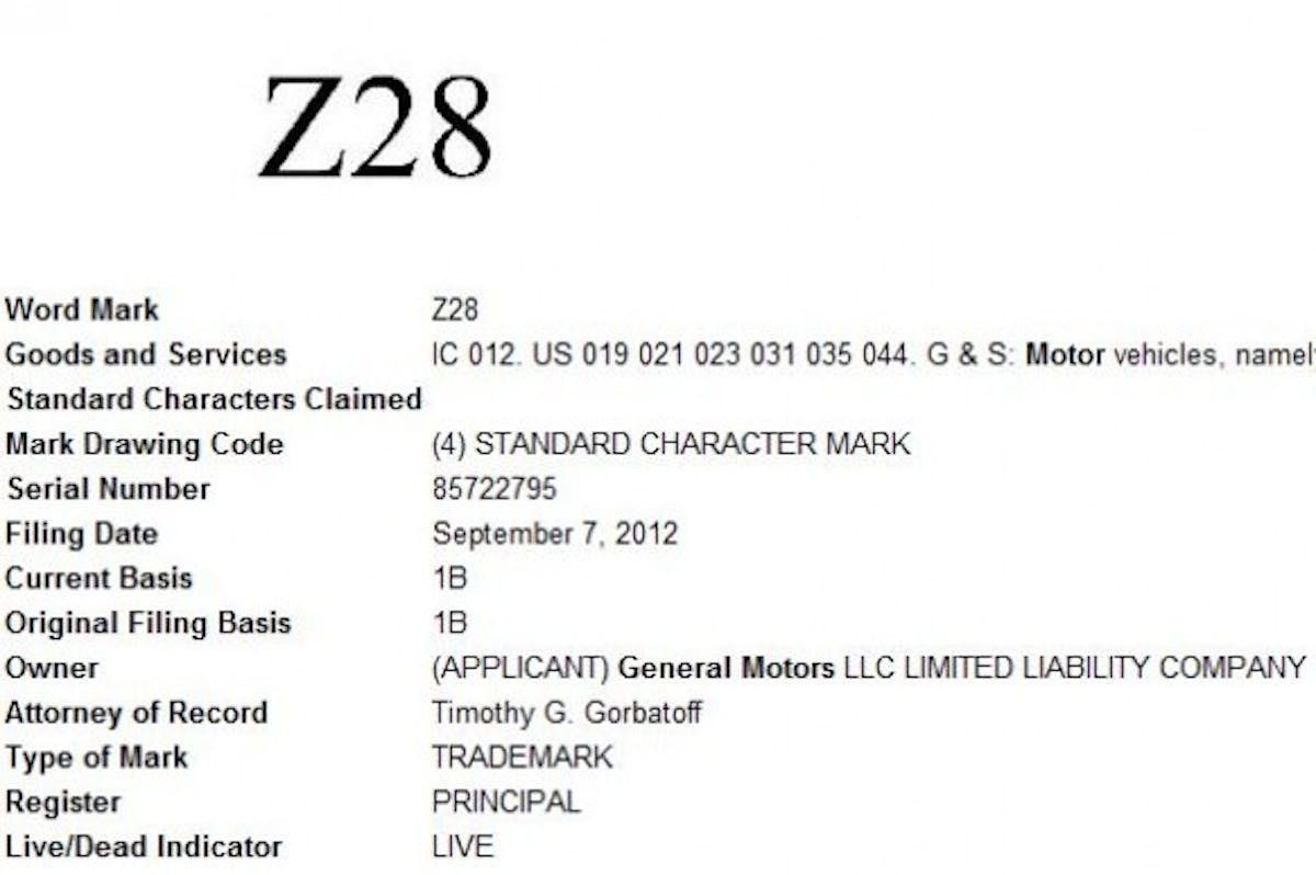 When we say recent we mean just a few days ago. GM put in a trademark application on September 7th for “Z28,” a move that often precipitates that actual launch of a new car. The same thing happened with the not-ready-to-be-revealed Chevy SS sedan, of which Internet sleuths uncovered ample evidence both via trademarking and OnStar.
