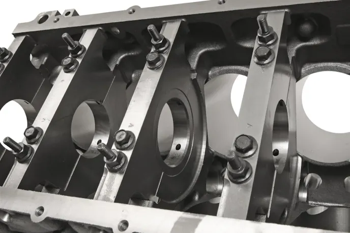 Summit took the best learned from the Gen III blocks, Gen IV blocks, and racing to give the Summit LS block every advantage possible. Starting at the bottom, the SPC Pro LS block features the same six-bolt main cap design as the Gen III and Gen IV OEM blocks, but with billet steel caps and 180,000 PSI main bolts for extra strength.