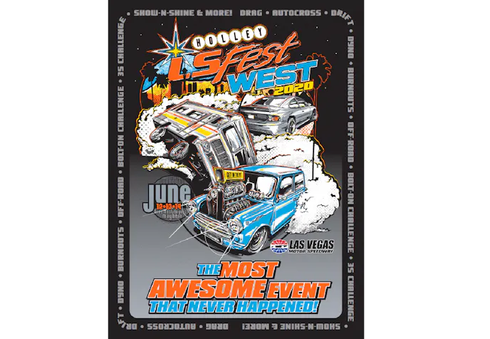 However, there is good news. According to Burnett, LS Fest West pre-registered participants will receive a courtesy care package from Holley. It will contain an event T-shirt, event poster, and a collectible pin. If you weren’t pre-registered and still want a t-shirt, you can still purchase one. Burnett says, “This 2020 LS Fest West shirt will also be available at www.holley.com in recognition of ‘The Most Awesome Event That Never Happened.’ Stay tuned to LS Fest’s social media over the June 12-14 weekend, as we virtually celebrate the awesome LS engine with content from previous event years, LS Fest West related giveaways, product giveaways, and more!”