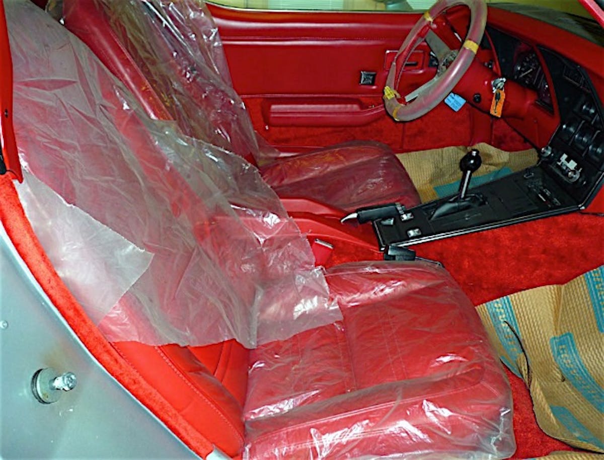 This was a special ordered, 1978 Silver Anniversary L82 Corvette that was put up on blocks with just 4.1 miles on the clock for 38 years. It was never dealer prepped so it’s now a fascinating look at how late seventies ‘Vettes rolled off the line. The Mulroney sticker is still on the window, yellowed and faded, as well as the invoice, and ordering documentation. The car was just released form an the owners estate and is being offered for sale for the first time.