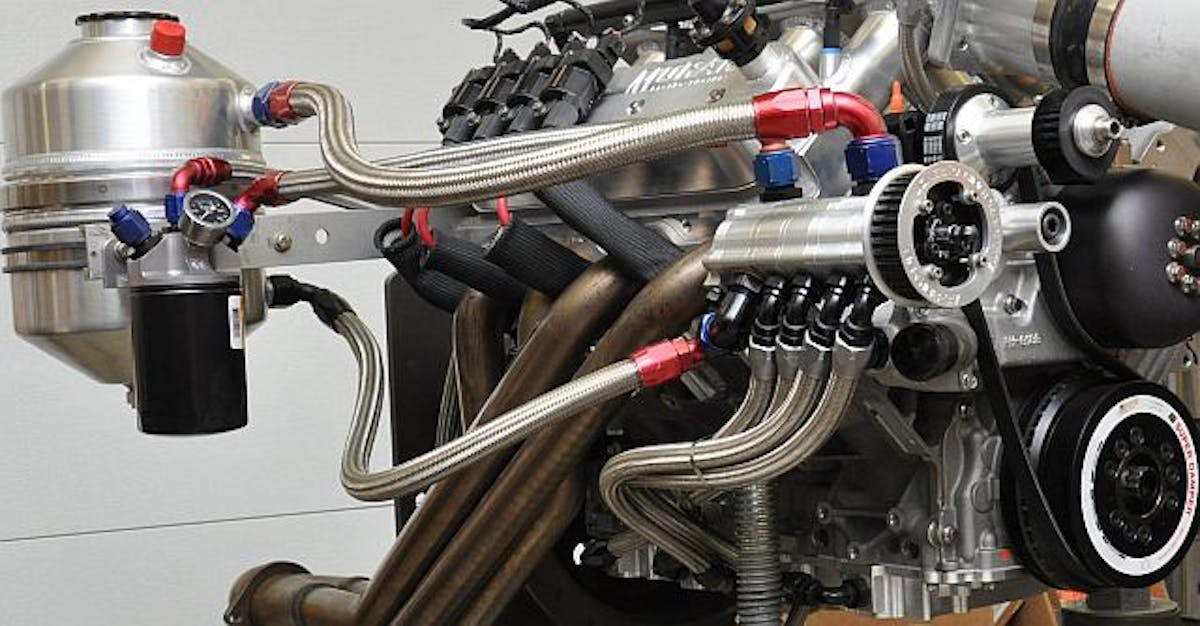 The solution is relatively simple. You install what’s called a dry sump system. The difference between a Dry Sump and Wet Sump is that the Dry Sump setup collects and stores the oil in an external reservoir apart from the engine. From there, it works almost like an IV drip in the hospital. An external pump pulls the oil from the bottom of the reservoir, sends it through the engine, and then pumps it back into the reservoir. The oil sump at the bottom is replaced with a shallow collection area where the oil is gathered and shipped back to the reservoir.