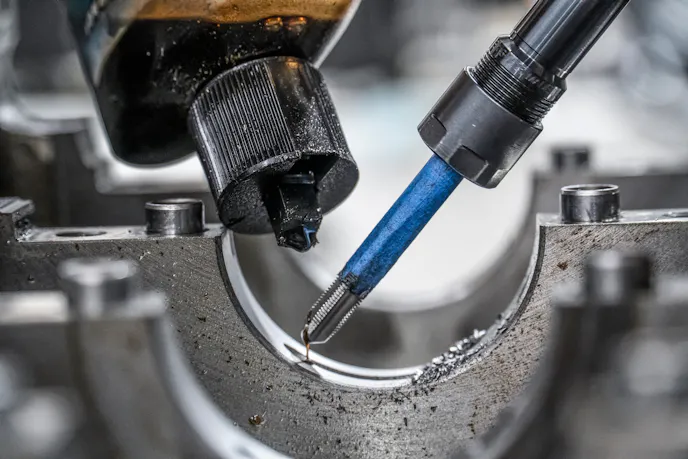 Sometimes an engine build is intended for endurance rather than unbridled performance. Unlike drag racing, events like drifting, and road racing see extreme RPM situations for prolonged periods of time. By machining and outfitting a block with piston oil squirters, LME’s ingenuity keeps pistons cool and lubricated for both performance and reliability purposes. After utilizing a drill to bore an angled hole within the mains, LME is then able to tap the hole and install squirters at the ideal location.