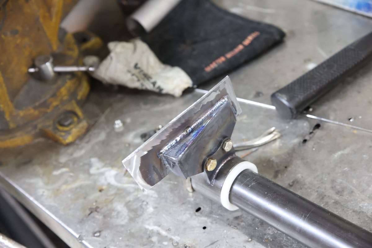 By the time day six rolled around, we could see the finish line of completing Project 899, and we were all anxious to get things buttoned up, get a tune in the car, and hear it fire up for the first time. We still needed to make several hoses and get them installed, and the last major component to finish was the anti-roll bar. Because of how the ’69 Camaro frame rails are shaped, Chuck and Rick needed to measure and fabricate offset mounting plates to ensure the anti-roll bar would mount square to the car’s chassis.