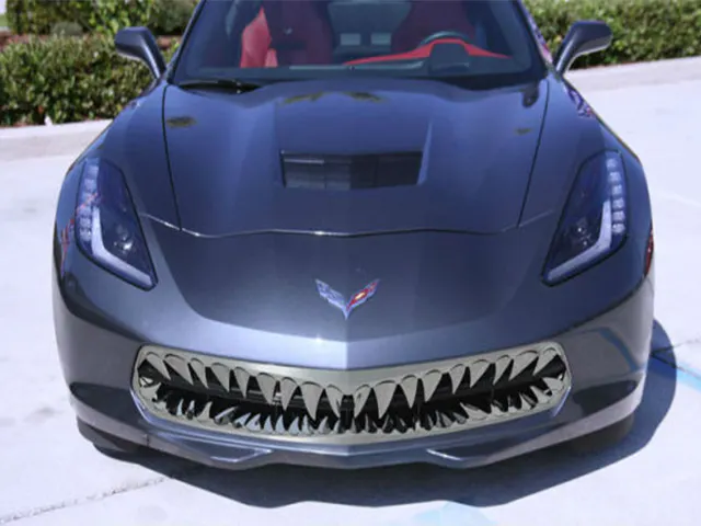 For those of you who just might be considering this, the kit is available for the C6 Corvette, C6 Z06, as well as the new Stingray. American Car Craft stresses this kit is not just some snap on or glue on job, and that the teeth are laser cut and made from durable 304 stainless steel and hand finished by skilled craftsmen. American Car Craft also guarantees the teeth will not tarnish or rust over time. With that said, the blood of the Vette’s victims should be of no concern.