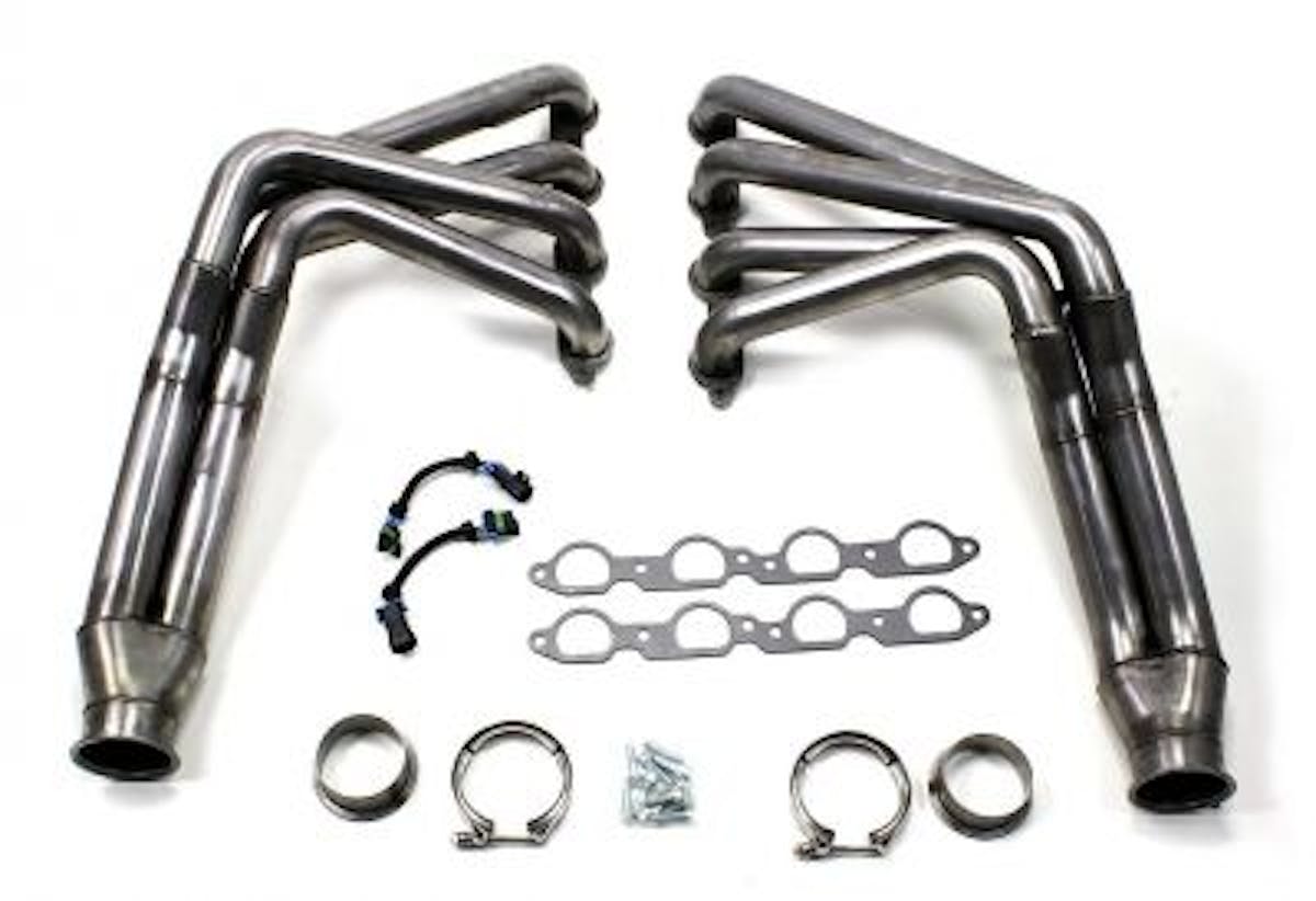 They come in Natural Stainless as well as Bright Silver Ceramic Coating (as shown here) or Titanium Metallic Ceramic coated for a rich appearance and long life. The Metallic Ceramic Thermal Heat Barrier Coatings will decrease under hood temperatures while retaining more heat in the headers for increased flow, these two features add up to more horsepower. These headers come complete with reducers, 11,00o-degree F rated gaskets and premium installation hardware.