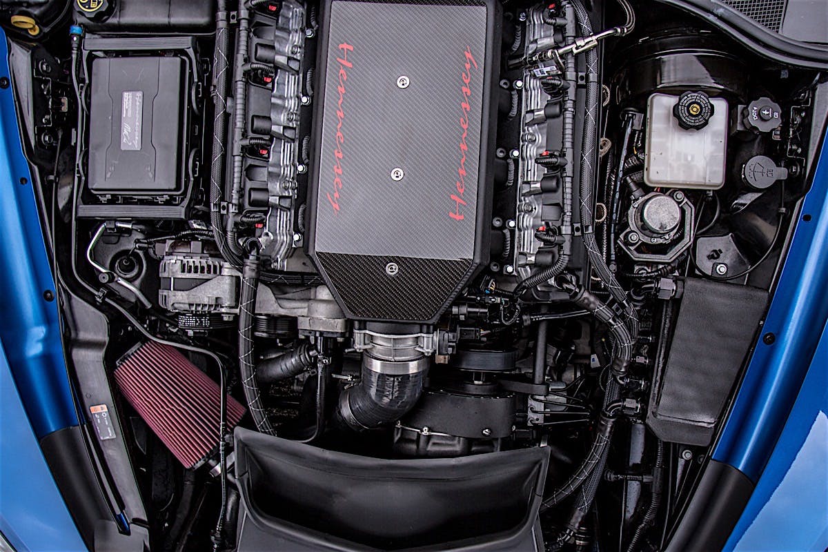 The HPE1000 package for the 2015-’17 Chevrolet Corvette Z06 has an estimated power rating of a whopping 1008 horsepower at 6,500rpm and 823 lb-ft torque at 4,000rpm. It does a 0 to 60 of roughly 2.5 seconds, a quarter mile in 9.7 seconds at 147MPH, and has a top speed of over 220 mph. And yes, it is available for both the automatic and manual transmission equipped vehicles. After installation of the super long list of upgrades, the vehicle is dyno’d, tuned, road tested, and then (like all Hennessey builds) backed by a 1 year/12,000 mile warranty.