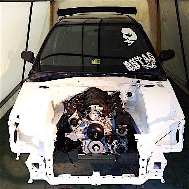 Looking for a drift car that wasn’t just another S-chassis, Justin decided to go all-out and traded his RB25DET swapped 240sx for this WRX back in 2012. He converted it to rear-wheel drive and drifted it with the EJ20 for about two years but eventually came to his senses and opted for an LS1 instead.