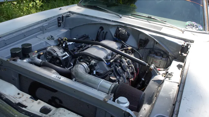?si=wKTDPz2wxiJ9gJ30Keeping the rear tires spinning on the Plymouth is an L92 6.2L LS engine that, according to Mackey, has upgraded valvetrain, a big camshaft, and a BTR intake manifold. The engine makes 468 wheel horsepower on a Mustang chassis dyno, plenty for getting the big muscle car sideway. Power is transferred through a T-56 manual transmission that one of Mackey’s coworkers built for him, and he manipulates the throttle, brakes, and clutch with precision thanks to the Tilton floor-mount pedal box.