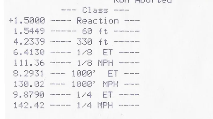 I did the burnout, staged, then got focused. I didn’t worry about my reaction time (it was horrible as you can see) and I put it on the converter until it felt like it was going to roll forward, and then let it rip. I knew at the end of the track it was a good pass when I saw 145 mph on the heads up display. We finally did it, running a 9.87 at 142 MPH!