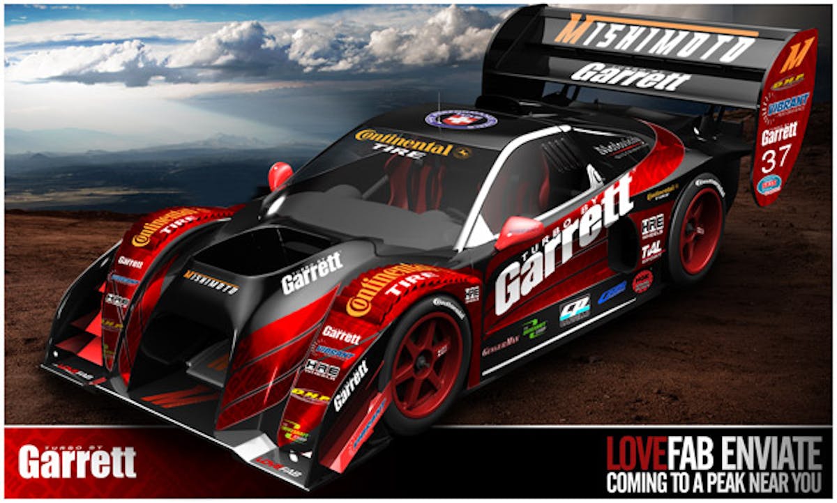 2013 will be no different, and the first competitors are already announcing their intentions to conquer the peak in the name of their sponsor. Love Fabrication joined forces with turbocharger maker Garrett for the “Turbo by Garrett/LoveFab Pikes Peak Enviate”, a custom Pikes Peak racer based on an Acura NSX and powered by a turbocharged LS1 engine.