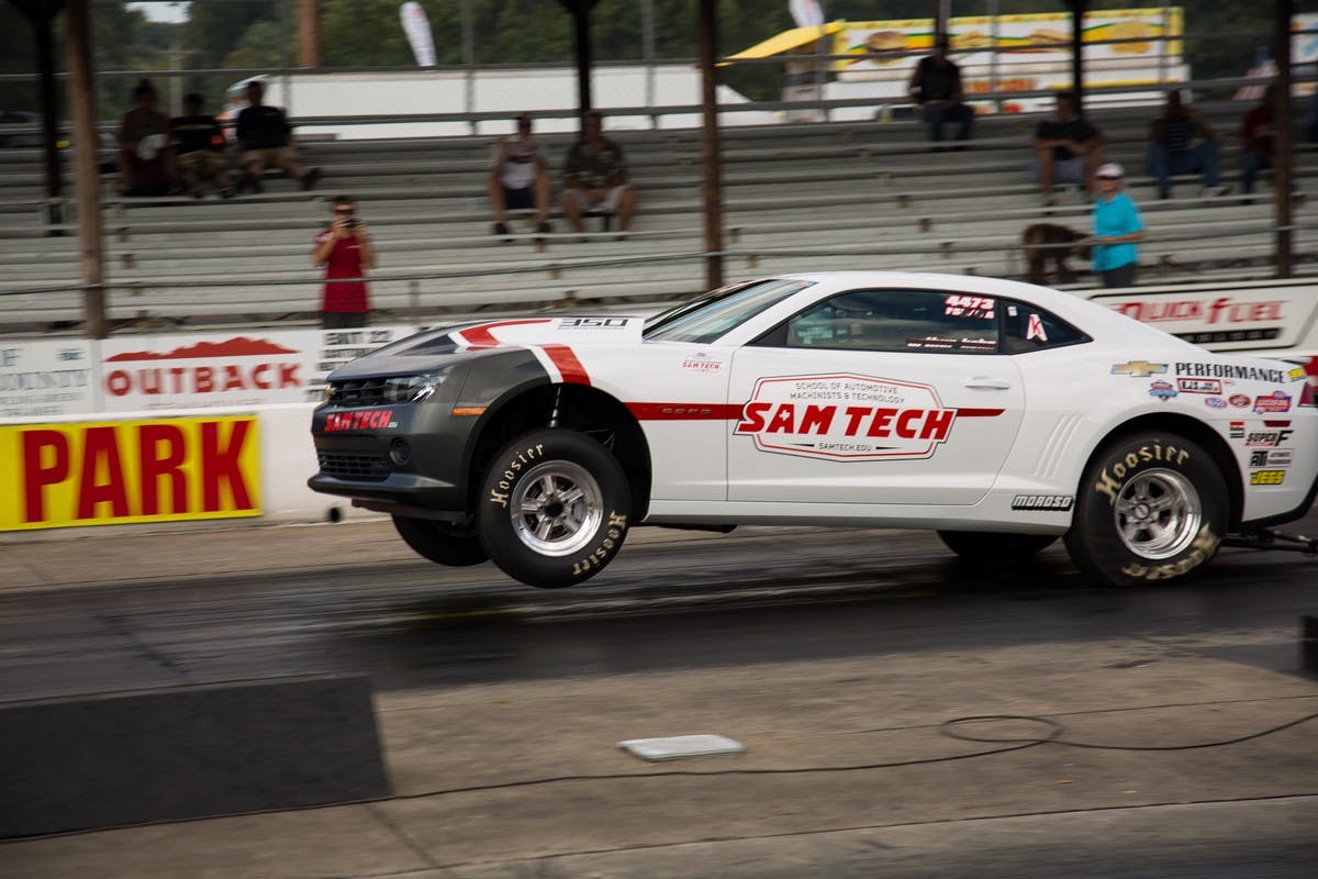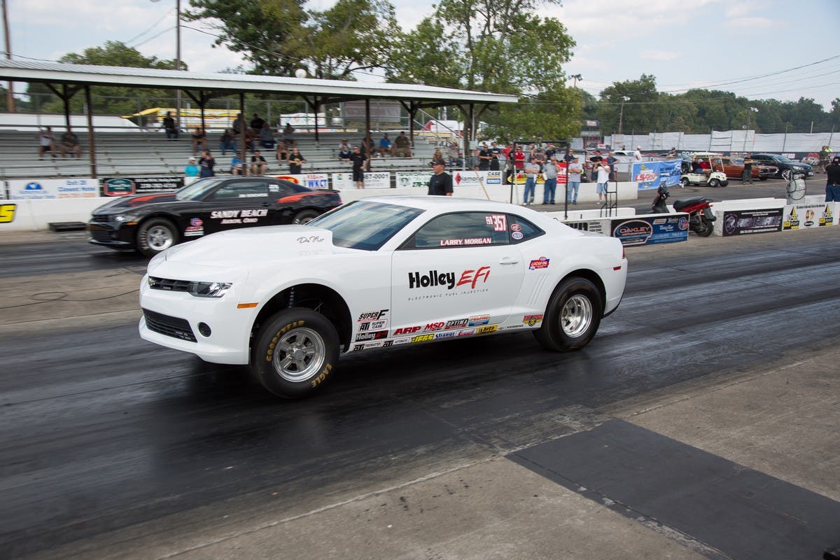 As we got nearer, a dilapidated old amusement park slipped into view and we began to think to ourselves “this can’t possibly be right” before we glanced in the rear view mirror and heard the thump of a cammed fourth-gen Camaro tailing us. Must be headed in the right direction. Finally we reached the entrance, a some what makeshift looking building that resembles the weigh station on the side of a freeway. After quickly flashing our media credentials, we were in. And that’s when the fun began. Holley has made sure that any spare moment you have is packed with opportunities to test your car’s mettle or speak to vendors about increasing it — the mettle we mean. Whether you’re into autocross, high performance driver education (HPDE), drag racing (a personal favorite of ours), just showing off your ride or even drifting, they’ve got you covered — you just have to decide how best to allocate your precious time. That’s why we decided to divide and concur. Lets start with the good stuff, drag racing.