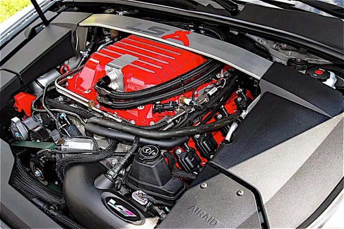 A ZL1 lid paired with a set of Injector Dynamics ID850s make sure that the mill is flush with air and fuel while a 2.55-inch upper pulley brings the V’s total boost numbers to 13 pounds. The addition of a flex fuel sensor allows the car to run on pump gas, E85, or any mixture in-between—though the stock fuel system limits the V to E40 until the pump and injectors can be upgraded. Cincy Speed handled all of the car’s tuning needs and brought the car’s official numbers to 638 horsepower and 586 lb-ft of torque at the rear wheels on the blended ethanol.