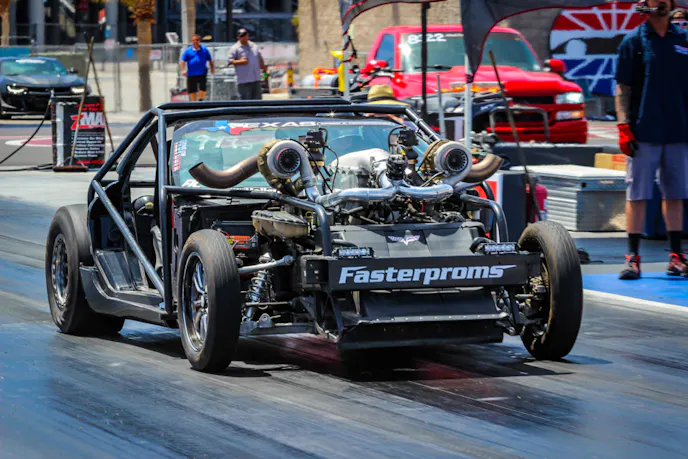 If trucks are your thing, and more specifically, trucks jumping ramps, skip to about six minutes into the video and watch a white crew-cab Silverado smack its front clip on the pavement (and then again on a concrete divider, coming to a stop). Just after the ten-minute mark, you’ll find our friend Jeff Kay’s twin-turbocharged 4.8-liter V8 swapped Mazda truck, aka Stock_ish. Jeff went so hard that the engine got hot enough to melt the oil filler cap. Check out the full video above and tell us which LS-powered ride was your favorite.