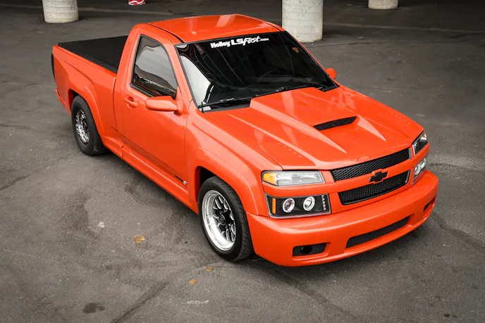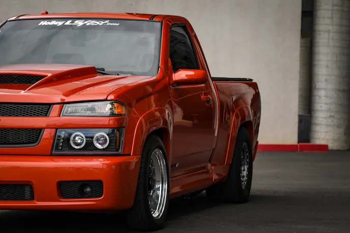 At first glance, even at 100-feet away, you can see that Izzy’s 2006 Colorado Extreme is far from stock. Rocking a super bright orange paint job, Just about everything regarding this Chevy stands out and grabs your attention. From about 50 feet away, the Colorado has an aggressive low profile stance matched with Weld Racing beadlock wheels. And it was at this point, we could tell this truck meant business. All of the Colorado’s subtle details really start to play when you get right next to it.