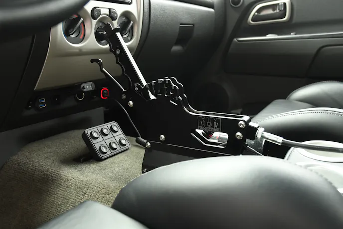 The interior of the Colorado has Izzy sitting in a Recaro racing seat, looking at a beautiful Holley digital dash for data acquisition. The 12.3-inch Pro Dash is encased behind the factory dash bezel paired with the mini screen to display additional information. The factory shifter was removed and replaced with an M&M floor shifter to finish off the super clean interior.