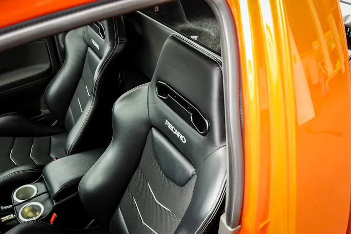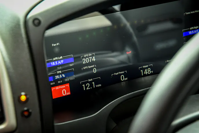 The interior of the Colorado has Izzy sitting in a Recaro racing seat, looking at a beautiful Holley digital dash for data acquisition. The 12.3-inch Pro Dash is encased behind the factory dash bezel paired with the mini screen to display additional information. The factory shifter was removed and replaced with an M&M floor shifter to finish off the super clean interior.