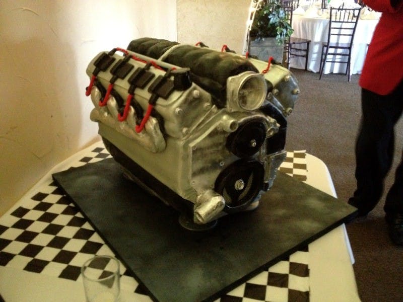 Love is a many splendored thing – especially when two LSX enthusiasts fall in love, like Sarah and James Karger from Fort Worth, Texas. The Kargers just sent us these pics from their wedding this past weekend featuring what has to be hands-down the most awesome Groom’s Cake we’ve ever seen; an incredibly accurate sugar and flour replica of our favorite power plant – the LSX.