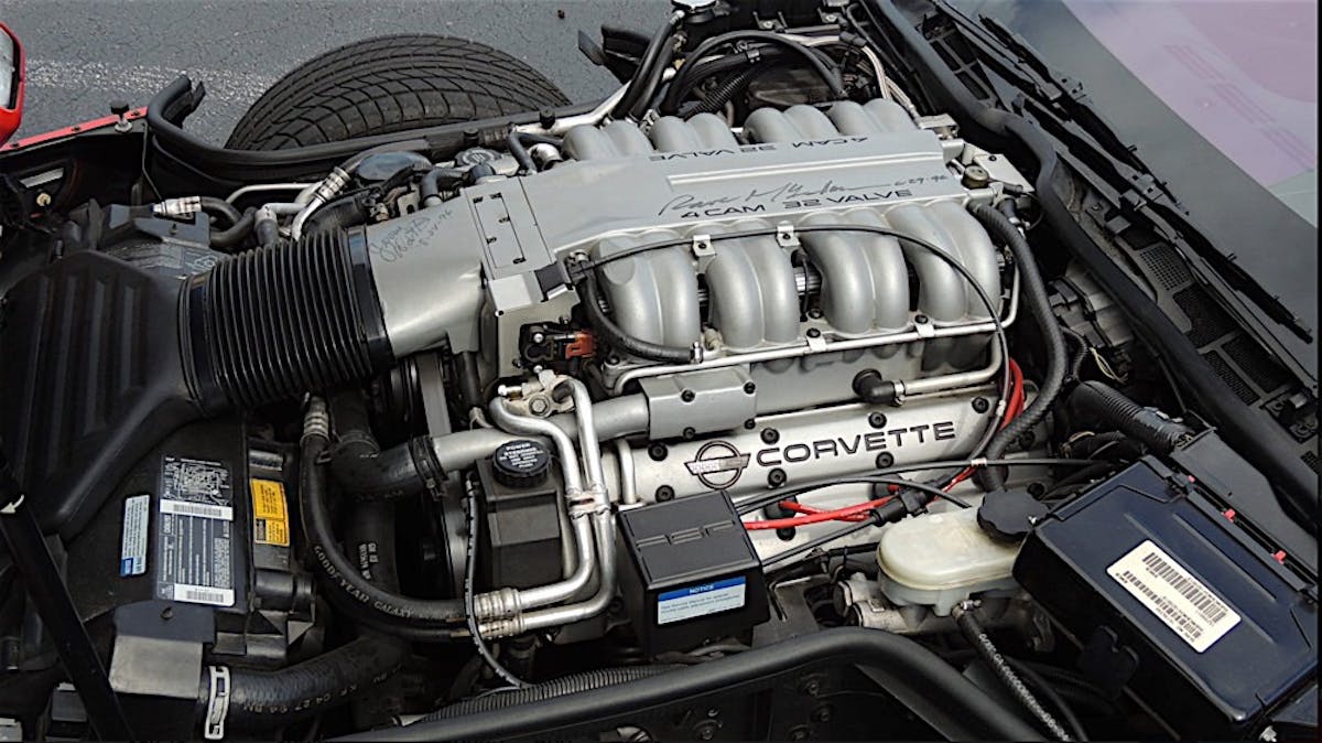 The car looks to be all original with it’s tall factory stance, five spoke alloys and signature wide bodywork. Former Corvette Chief EngineerDave McLellan has lent his “John Hancock” under hood as well.