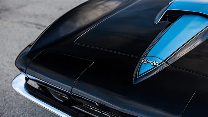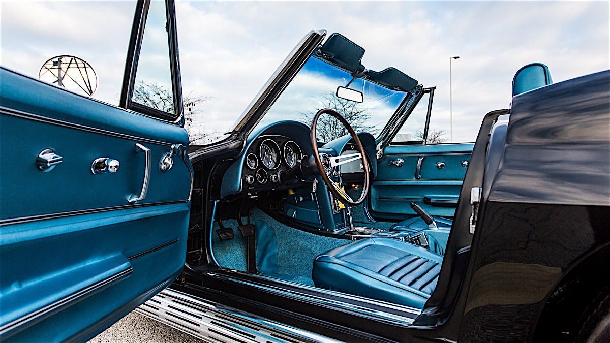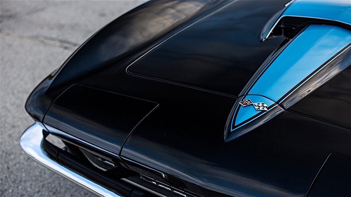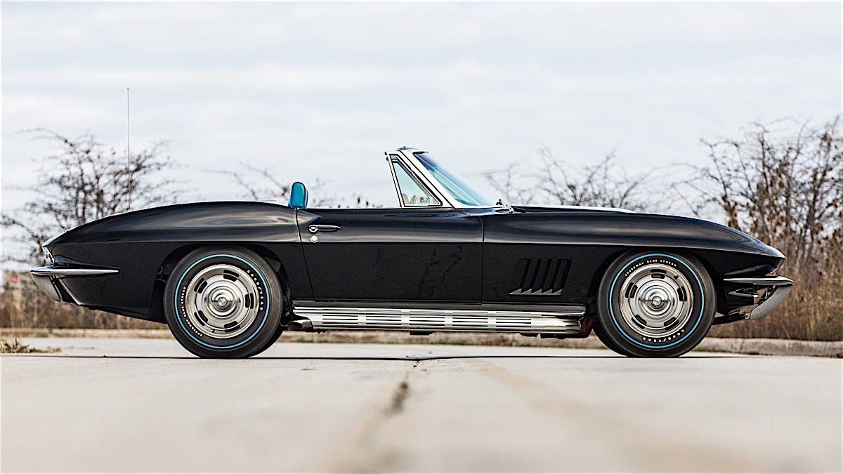 This morning we just happened to find one of those “diamonds”– one of four Tuxedo Black and Bright Blue 1967 Chevrolet Corvettes. The only black and blue ’67 with this convertible top and side exhaust.
