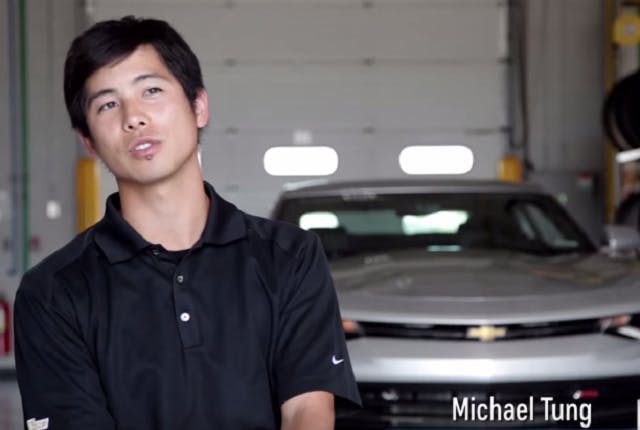 With a title like Chassis Controls Engineer, you wouldn’t exactly expect Michael Tung to have a particularly exciting job to do. And that’s where you’d be wrong, as Chassis Controls Engineer is auto industry slang for professional drifter, and when Tung isn’t competing in the Midwest Drift Union, he’s getting the new 2016 Chevrolet Camaro sideways. Drifting for science, of course.