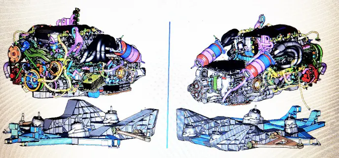 - Giant flat space above transaxle is more than likely for intake box/filter.