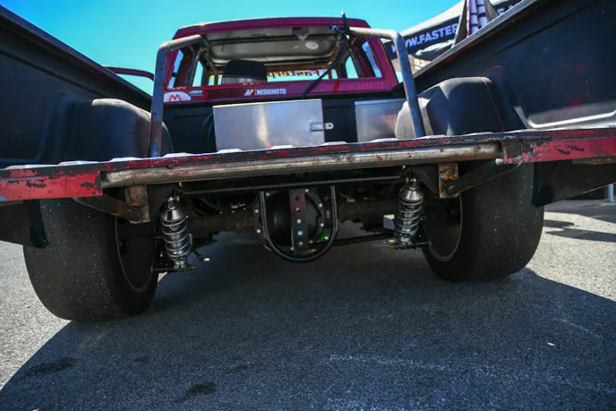 For the drivetrain, Jeremy decided to go the manual route and call upon a TR6060 for gear changes. The truck has a stock front differential in it at the moment, and if it holds up, Jeremy is planning on inserting a Limited-Slip-Differential (LSD). LOJ built a special adapter to mate the Trailblazer transfer case. Due to the engine set back and the length of the TR6060 combines with the TBSS transfer case, the front driveshaft will actually be longer than the rear.