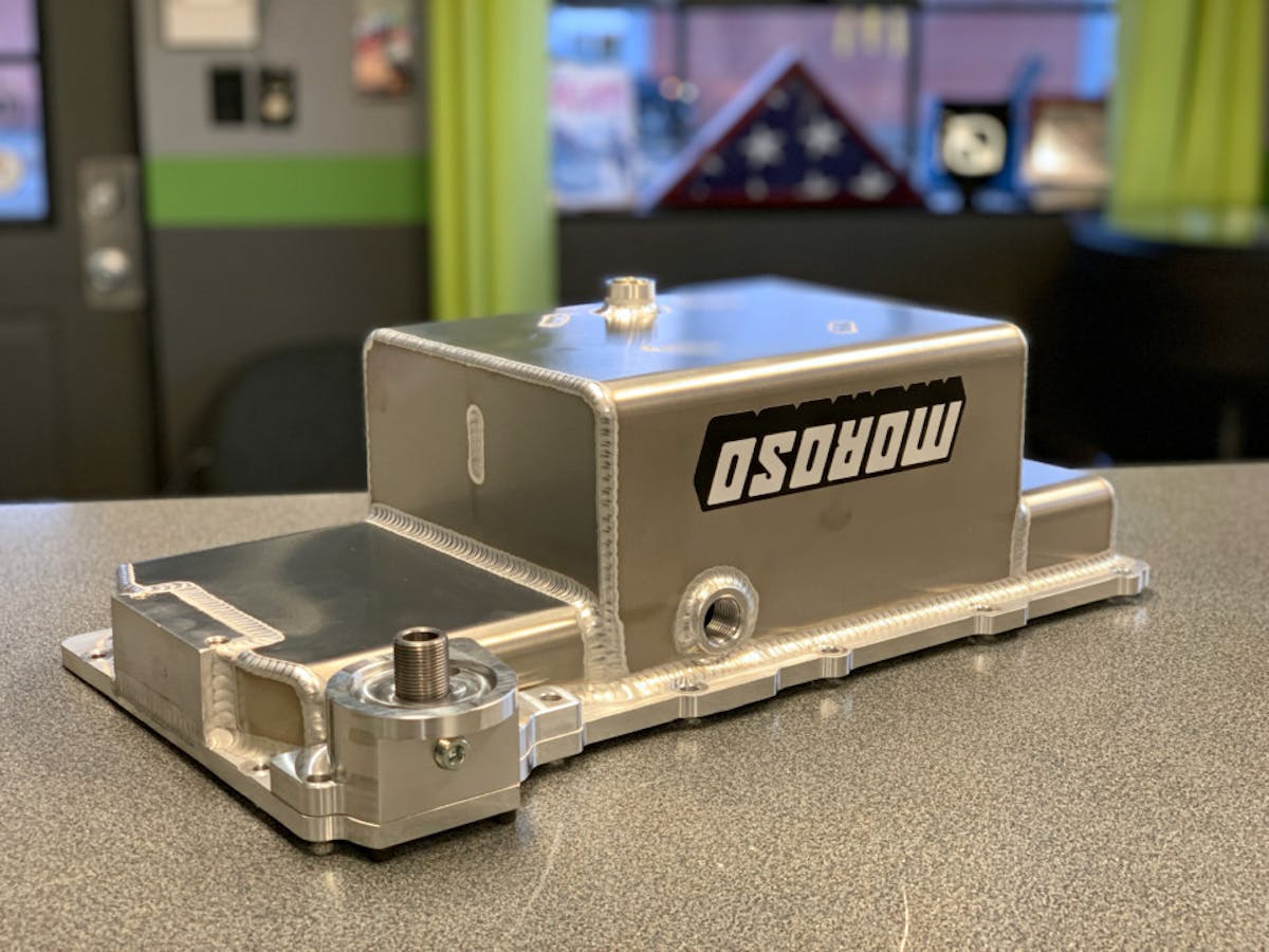 Brandon Furches of LS4king.com is one enthusiast that has pushed the limits with his 700-plus horsepower turbocharged FWD Monte Carlo. When the 4T65eHD transmission became the weak link, he sliced and diced the factory oil pan so he could accommodate the heavy-duty 4T80e transmission. While the modified oil pan worked, Brandon admits that it was extremely time-consuming to fabricate and somewhat crude. Plus, it resulted in the loss of about a half quart of oil capacity. To fix these ailments, Brandon elected to work with Moroso on this venture. Brandon said, “We have been developing a production-based oil pan solution for well over a year now. We decided to work with Moroso and teamed up to bring the pan to market. This is a collaborative piece where Moroso took our design and significantly improved it. These pans will only be available through LS4King.com.”