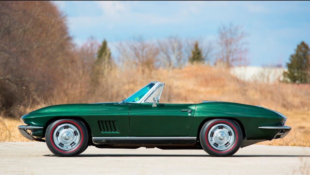 In January 1967, the Green Bay Packers won the first Super Bowl under the leadership of quarterback Bart Starr. One of the NFL’s all-time greatest players, Starr led the Packers to a 35-10 victory over the Kansas City Chiefs and was named the game’s Most Valuable Player. To commemorate that award and celebrate the victory, this 1967 Corvette Sting Ray Convertible was gifted to Bart Starr for his efforts. Built at the St. Louis assembly plant in June 1967, it was ordered in Goodwood Green to match the Packers’ home jerseys and was fitted with a black interior and black soft top. Equipped with the base 327/300 HP small-block V-8, it was optioned with a 4-speed manual transmission, a 3.36:1 Positraction differential, Soft Ray-tinted windshield, telescopic steering column and an AM/FM radio.