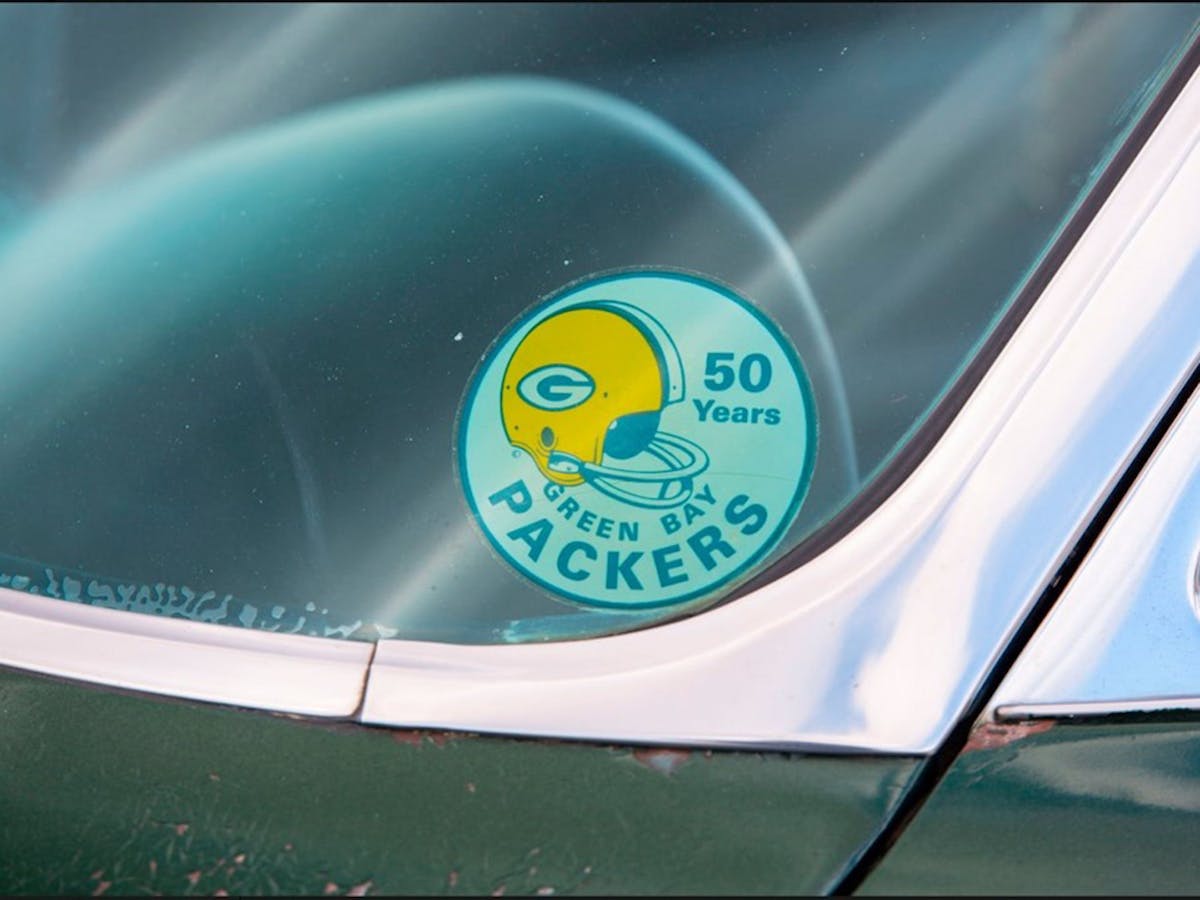 The car’s Goodwood Green paint is also mostly original with a few minor touch-ups and great patina. While exhibiting some checking and cracking, it shows very well in maintaining a significant element in the car’s overall originality. A set of period-correct bias-ply redline tires on the original 1967 Rally wheels complete this amazing artifact of NFL and Green Bay Packers history.