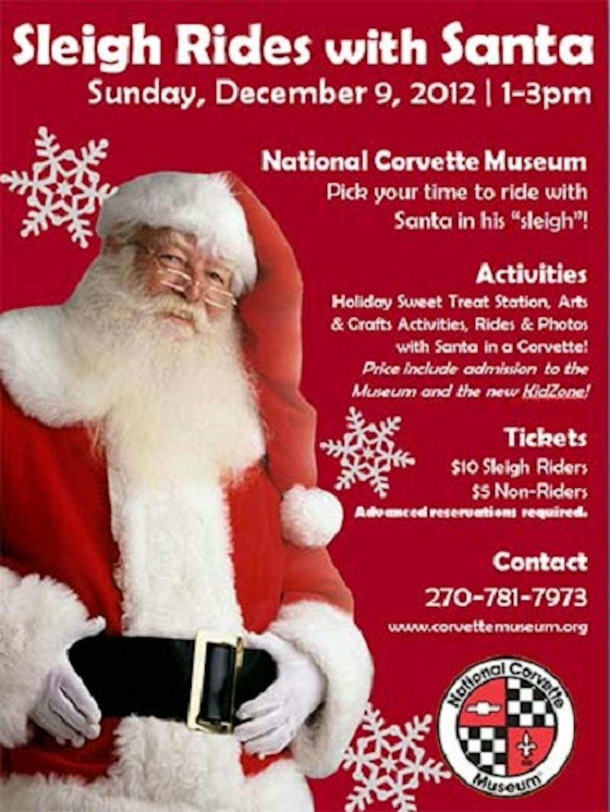 December is a very busy month for Santa, so it’s quite the treat for him to make time to once again stop by the NCM for this year’s holiday event December 9th from 1pm until 3pm. The event will feature photo opportunities with Santa with your own camera or a professional photographer, arts and crafts and even some sweet holiday treats. Adding to the excitement this year will be sleigh rides with Santa offered in his Corvette sleigh around the museum grounds. Tickets for the event are just $5 and anyone ages 4 and up can get your ride in Santa’s sleigh for just $5 more. Be sure to get your tickets online soon because there are only few sleigh rides left.