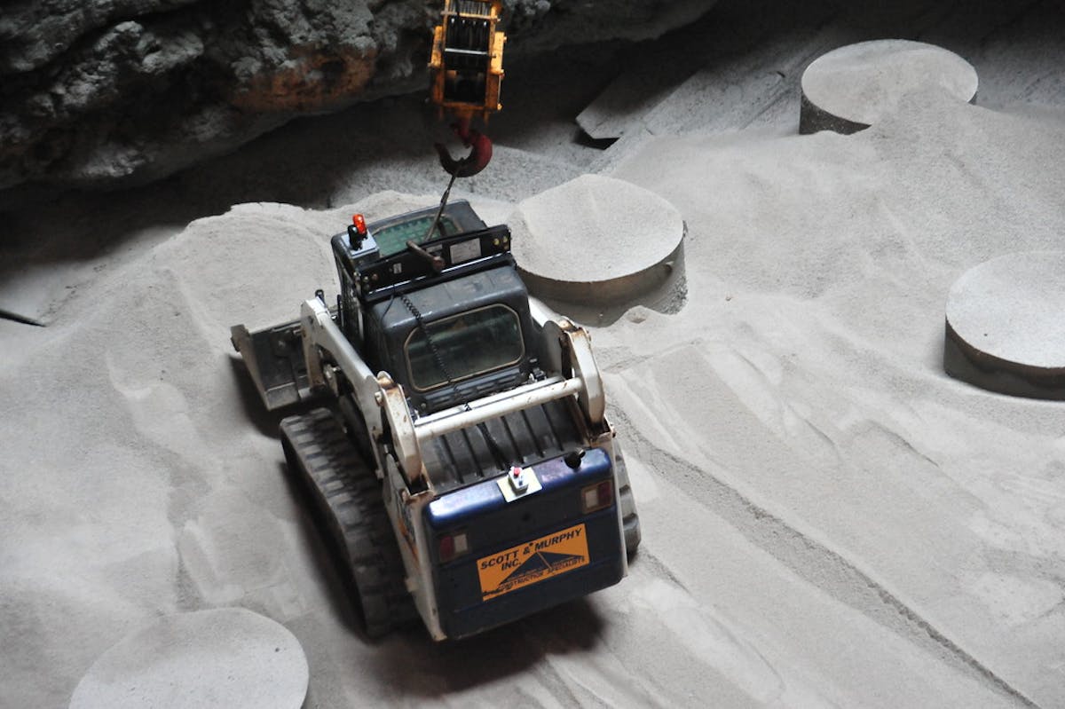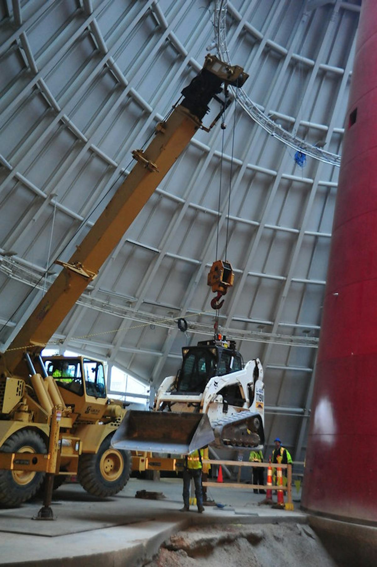 A Bobcat has been lowered into the hole to level out the gravel and other aggregate used to fill the hole. As you can see from the pictures, the hole was quite massive and has made for quite a unique job. Strode also mentioned, “Each side of the cave is approximately 30 feet long and about 20 feet high. It’s just not feasible to fill the entire cave with rock so the construction team had to get creative with plugging every crevice.” In addition to the aggregate, they have used steel sheets and gunnite to add strength.