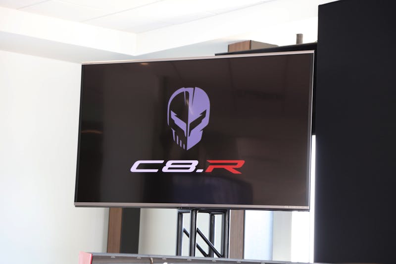 The big news everyone has been waiting to hear has to do with the engine, which is a direct-injected, 5.5-liter V8 that produces 500bhp and 480lb/ft of torque. The big news is the new race car will be running a V8 with a flat-plane crank, the first Corvette to ever race with the high-revving crank variant. Behind the engine, the gearbox is an all-new design, Xtrac, sequential six-speed. Gear shifting is activated with paddles behind the steering wheel, just as with the previous two generations of Corvette race cars. The C8.R will continue to run on Michelin tires and is stopped by Alcon brakes.