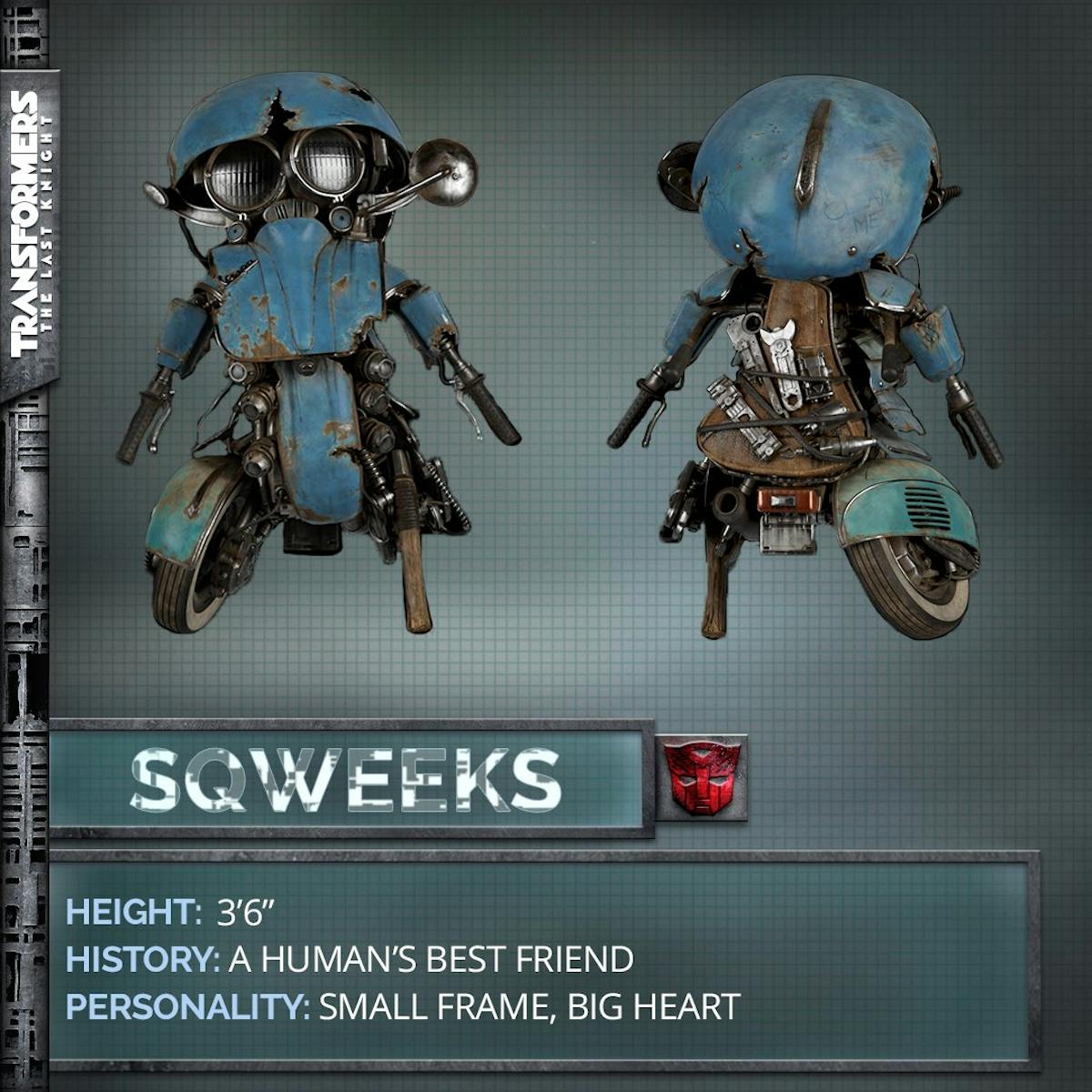 Three other new character designs for “The Last Knight” include the brand new Drift, Hound, and Squeeks. Drift was a blue Bugatti Veyron in the last Transformers film, and now is coming back as an all-new black and red Mercedes AMG GT R and Hound is now taking over the in-film medical duties, said to be transforming into a Mercedes Unimog. The smallest transformer yet, Squeeks, is supposedly “a humans best friend” with a “small frame [and] big heart.”