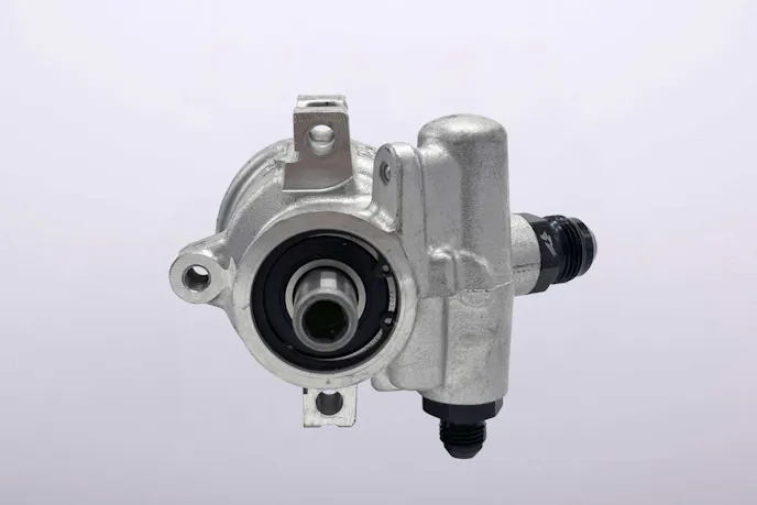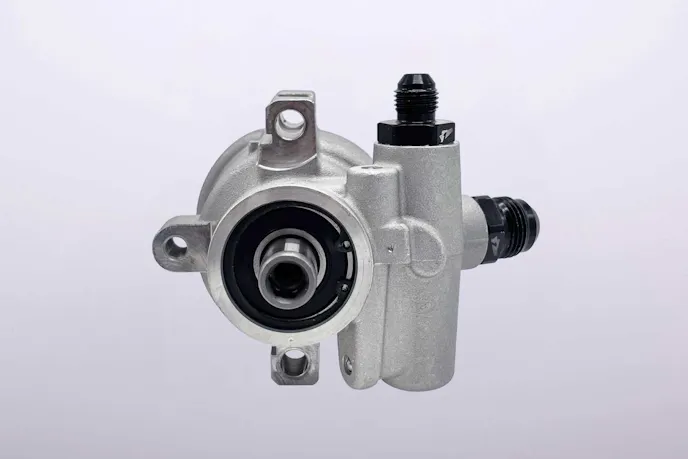The hydroboost-specific pumps feature -6AN pressure outlet that can be ordered on the top or bottom of the pump for versatility and -10AN return, providing compatibility with high-performance hose assemblies. The high-pressure capability ensures the system does not go into pressure relief during simultaneous braking and steering inputs, which is a common challenge in combined systems. Turn one can also build you a pump with an integrated reservoir if your application doesn’t use a remote reservoir.