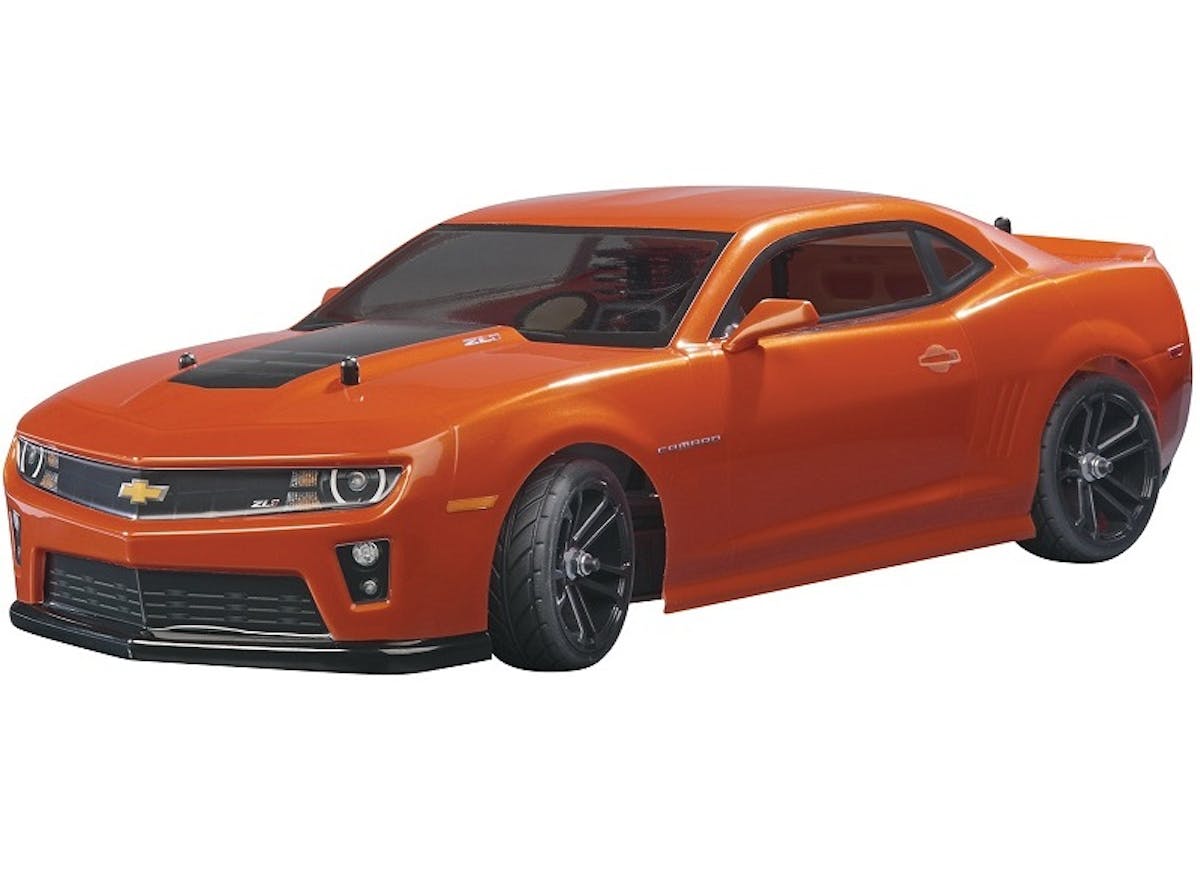 Packing an 18R gas engine that runs a 20% nitromethane solution, this little RC car packs a powerful punch worthy of the Camaro ZL1 name. A realistic-feeling, two-speed transmission delivers the power smoothly to all four wheels, allowing this Duratrax Camaro ZL1 to drift around corners with ease. Color choices are limited to Victory Red and Inferno Orange.