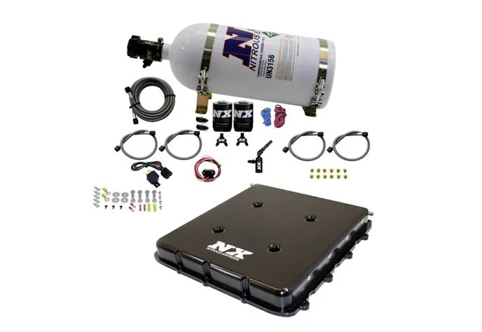 Maybe you’re looking for a little more power. NX also offers the billet lid with a nitrous system including a 10 LB bottle, the billet lid, Lightning solenoids, stainless steel braided lines, and all the necessary wiring and switches. This system (PN: 20939-10) is adjustable from 100 to 300 horsepower.